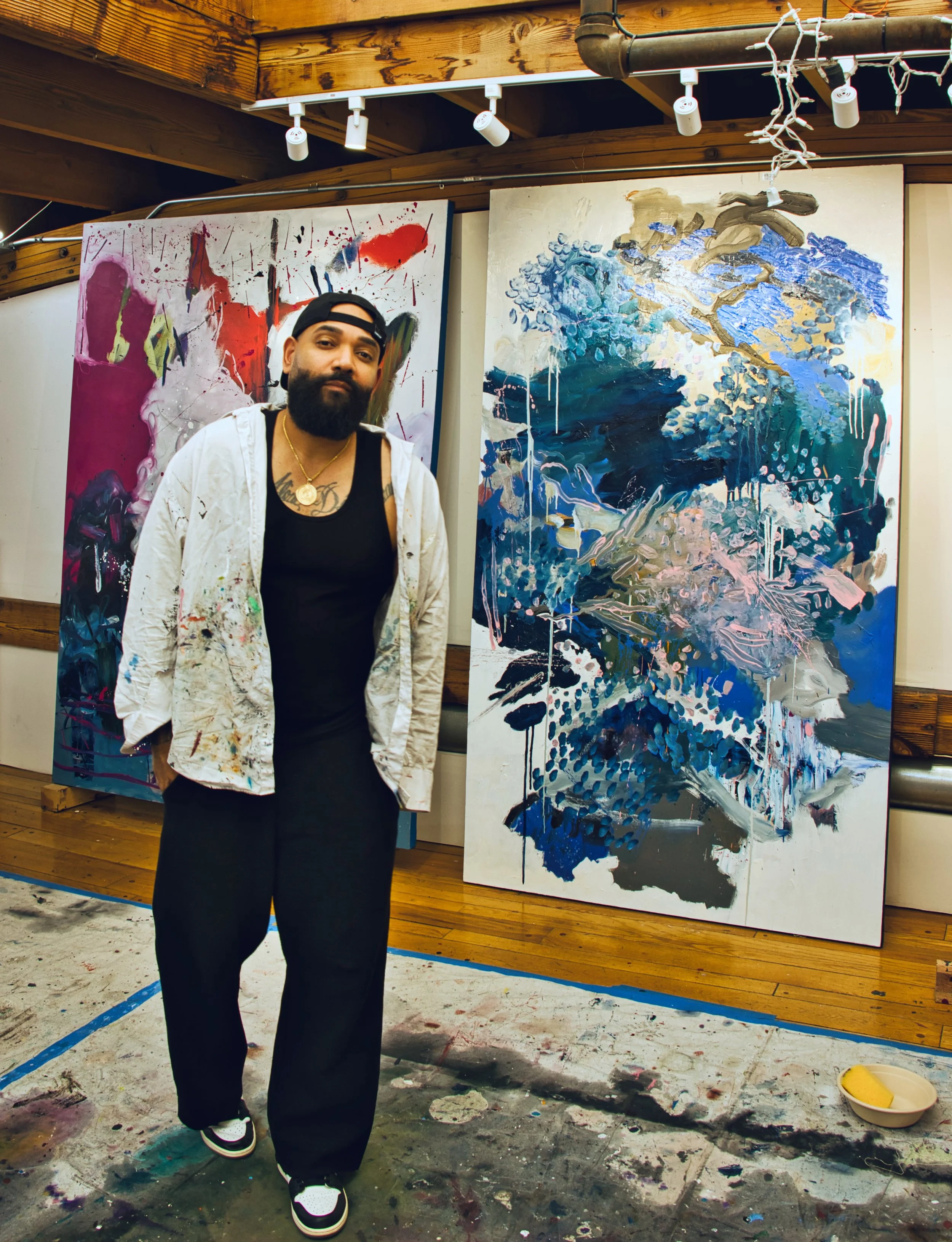 Chicago-born and raised, Fontaine Scarelli is a contemporary abstract expressionist painter whose work explores tension, time, and psychological space through large-scale, immersive compositions. A former fashion design student, Scarelli transitioned into painting with a distinct visual language rooted in instinct, restraint, and emotional intensity.